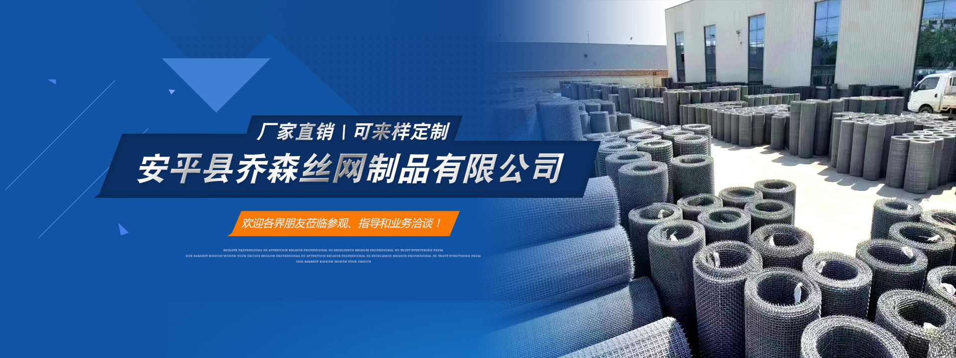 安平縣喬森絲網(wǎng)制品有限公司主營(yíng)產(chǎn)品:篩網(wǎng)、金屬裝飾網(wǎng)、沖孔網(wǎng)板、防滑板和軋花網(wǎng)。常年現(xiàn)貨供應(yīng)45號(hào)黑鋼絲編織篩網(wǎng)、熱鍍鋅鋼絲篩網(wǎng)、304不銹鋼篩網(wǎng)和冷鍍鋅鐵絲網(wǎng),加工定做耐磨65號(hào)錳鋼絲篩網(wǎng)、菱形孔防堵篩網(wǎng)、養(yǎng)殖用長(zhǎng)方孔鐵絲網(wǎng)、金屬裝飾網(wǎng)、盤(pán)條 礦篩網(wǎng)等各種鋼絲篩網(wǎng)和建筑用鐵絲網(wǎng)片,歡迎新老客戶前來(lái)咨詢洽談合作。